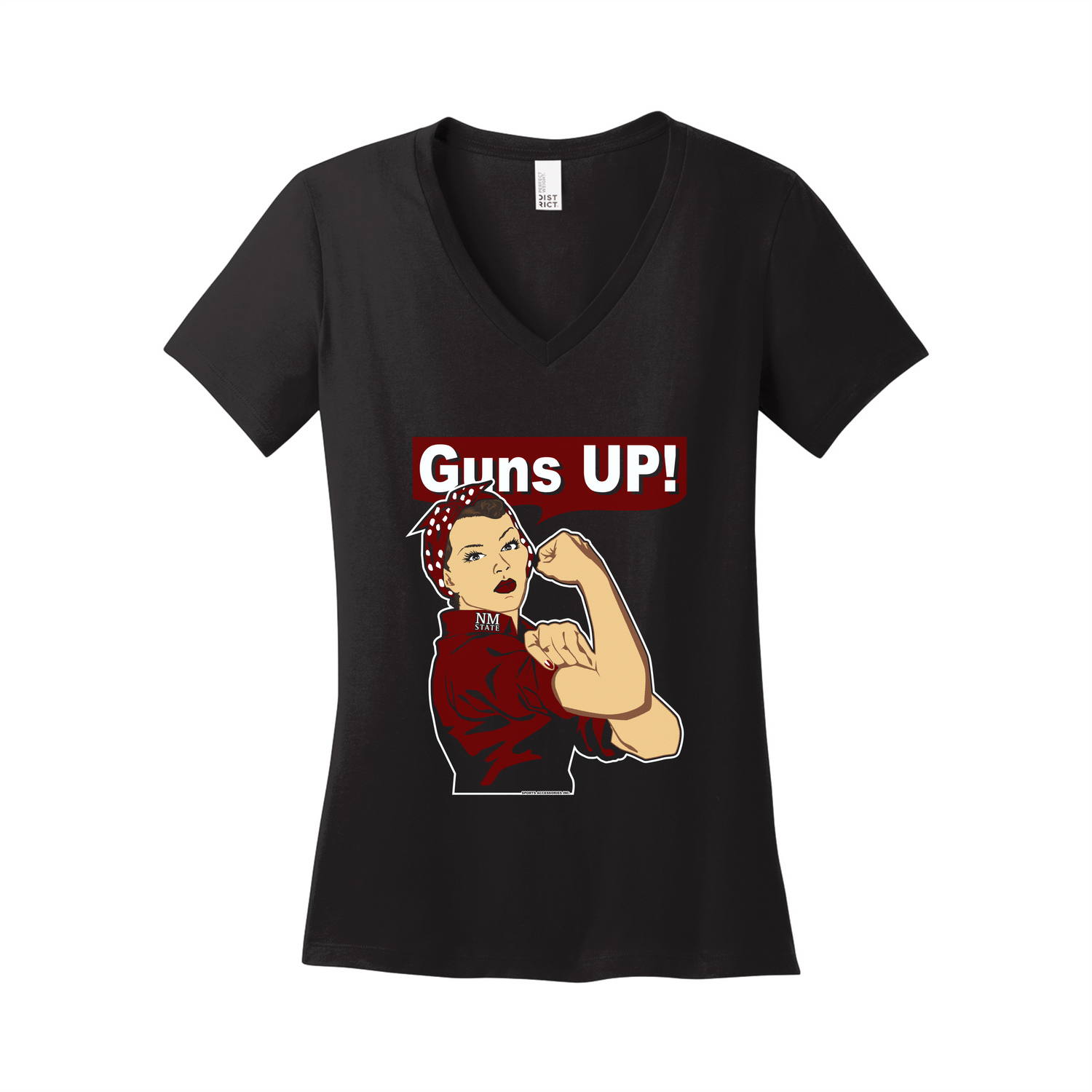 Rosie Guns Up V-Neck Tee - S / Black is backordered and will ship as soon as it is back in stock.