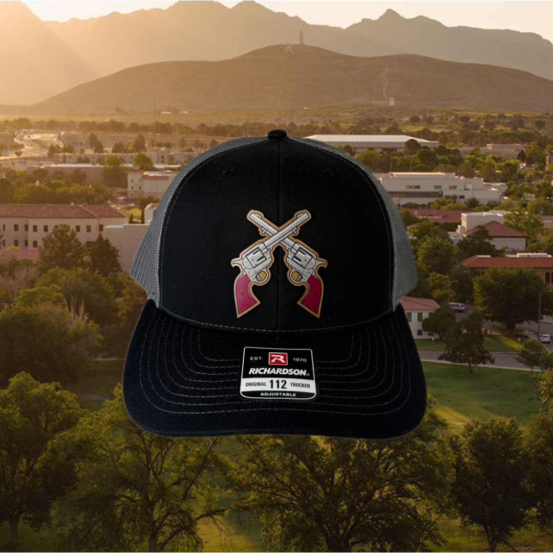Leather Patch Guns Trucker Cap - Black/Charcoal / OSFM is backordered and will ship as soon as it is back in stock.